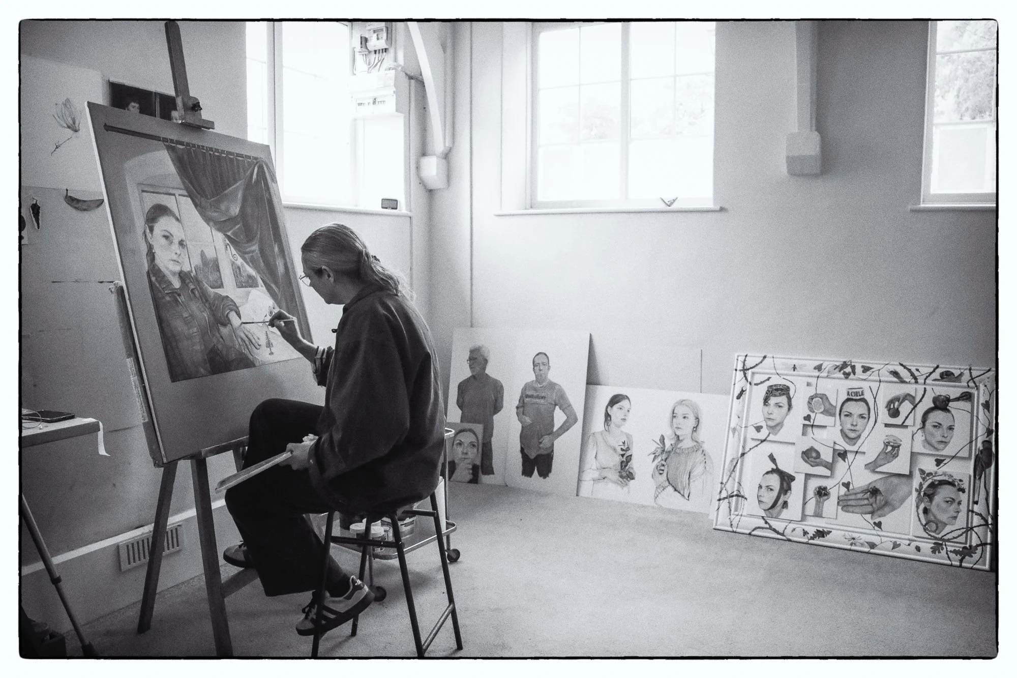 I am a community arts tutor working with the charity Heads Up Somerset delivering art for wellbeing workshops at their beautiful site just outside Wells. I run courses and workshops from my studio on the Mendip hills focusing on portraits, abstract art and nature. Please see my ‘courses’ section for more information.